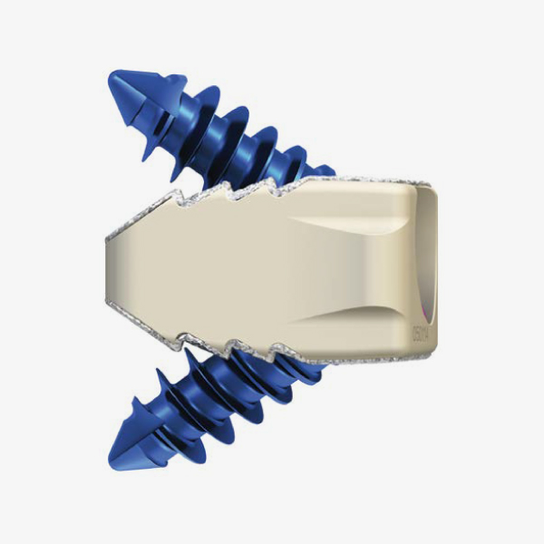 - El diseño anatómico de la caja y el ángulo de los tornillos permiten una fijación firme al platillo vertebral, asegurando estabilidad inmediata y facilitando la fusión ósea.